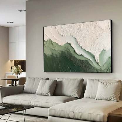 "Valley Vista" brings the essence of a serene natural landscape into your living space with its layered textures and flowing contours. Handcrafted with precision, this horizontal abstract artwork captures the beauty of cascading valleys, blending contemporary art with the tranquility of nature. Perfect for above a fireplace, sofa, or as a focal point in any modern room, this piece offers a refined and calming presence, ideal for creating a harmonious interior.